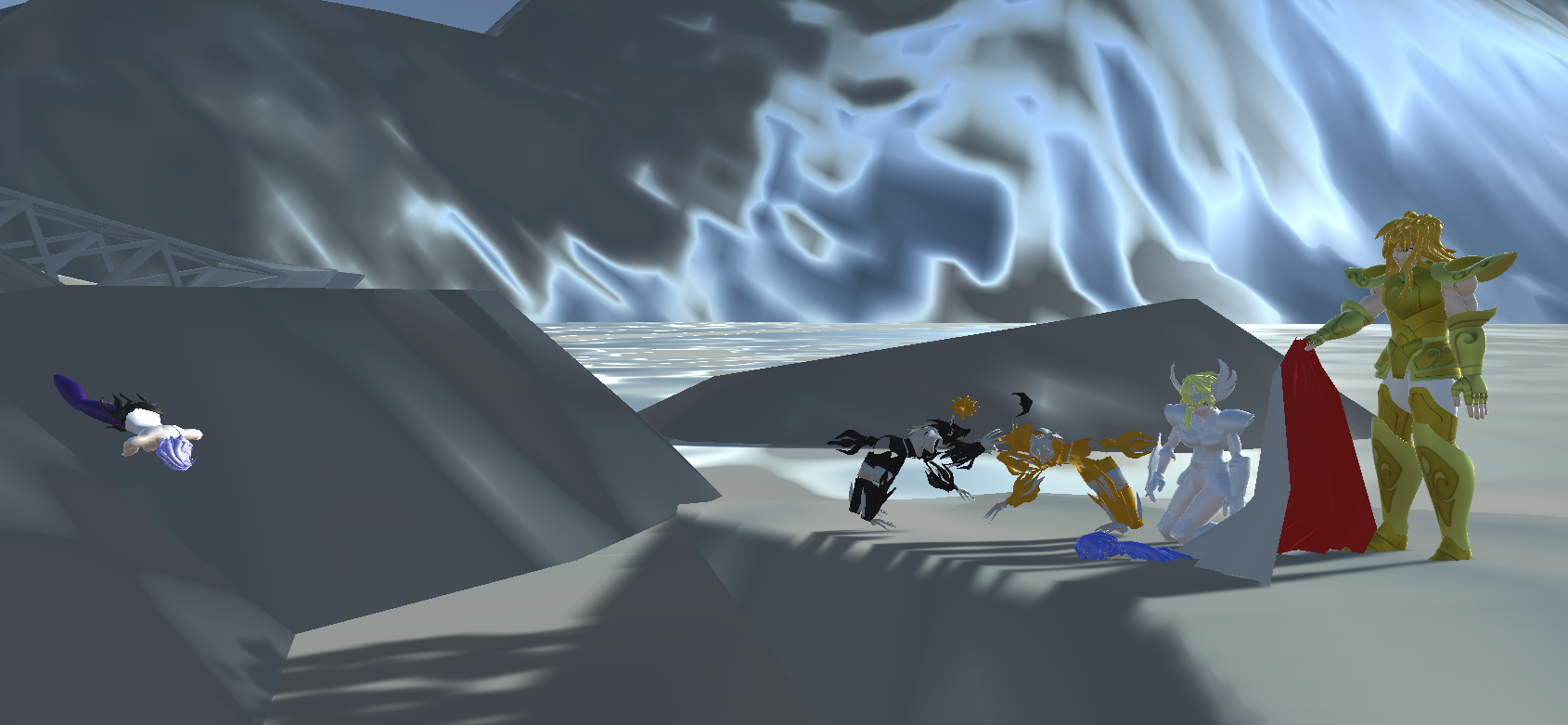 Hyoga y Shiryu usan un ataque combinado, para que Seiya pueda tomar la espada.